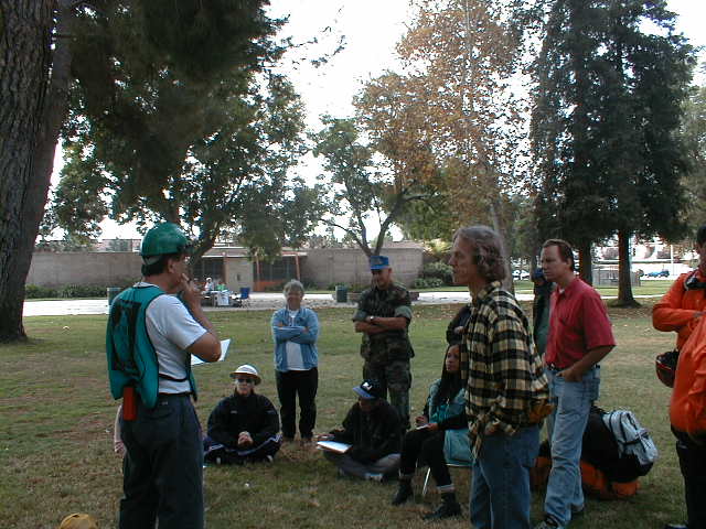 On October 28, 2001, Battalion 15 of the Los Angeles Fire Department conducted a Mass Casualty Training Drill at the park surrounding Northridge Recreational Center. Teams participating included California Emergency Mobile Patrol, Thousand Oaks Disaster Assistance Response Team, and the Battalion 15 Community Emergency Response Team. In the event you know of a team, or are a part of a team which participated and you would like to be included, let us know at cert-la.com. While you are at it, please include your comments and ideas on the event, so we can pass those on to those who work to improve this kind of event. Here are a few pictures from the event.