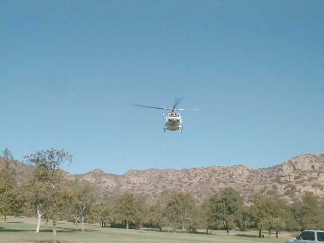 While we were all milling around, waiting for the event to begin, LAFD Airship 4 came in for a landing. The crew gave us a close-up-and-personal view of their helicopter. They took quite some time to explain who they are, what their mission is, and how they envision CERT members to fit into their operations during a disaster. We learned that the larger Bell helicopters fly with one pilot, a crew chief who is also a pilot, and two firefighter paramedic helitechs. Their training is demanding and rigorously exacting. Our training by them included providing safety to those on the ground by securing a safe perimeter around the helicopter, especially to keep people away from the tail rotor which turns about 30 times faster than the main rotor, rendering it invisible. Even with extensive precautions, people still lose their lives approaching a helicopter from the back, and walking into the tail. "You have no business or need to be behind the back of the side doors unless you are flight crew" was the main message.
